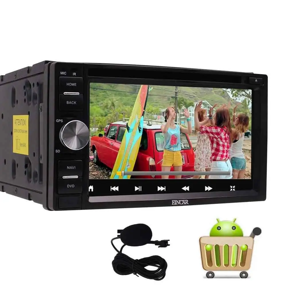 "Latest Android 6.0 Quad Core Car DVD Player Double Din 6.2 Inch Capacitive Touch Screen Car Stereo with GPS Navigation Support AM/FM Radio Audio 1080P Mirrorlink Steering Wheel Control Cam-in* Pure Android 6.0 Marshmallow operation System, 16GB Nand Memory, 1GB RAM, contributing to fantastic performance, New Advanced Design Unit with New Black Metal special coating,more stability and better Anti-shock;colorful Buttons with stylish appearance* Double Din Car Audio System with 6.2 Inch Capacitive 800x480 Resolution Touch Screen. Support 1080P HD Video; Touch Pen is included* GPS Navigation System with fast boot,built-in Navigation Software,pre-installed gps map, support online/offline map,2D/3D Map,compatible with most top navi apps.* Built-in Bluetooth & Microphone for hands-free calling and music, External Microphone is included as a gift,making your driving more safer and inconvenient; Mirror-link on this head unit with your smartphone's online GPS (not for Android 7 devices at present). Built in USB Port (up to 64GB), WIFI (Built in WIFI modem) * Panel Size is 178mm*100mm, with universal ISO cable. Suitable for most of cars, but please check the Size,shape,cable connectors before purchasingEincar Unique selling points:Latest Android 6.0 Marshmallow Operation System & Superior Quad-Core 1.6GHz CPU Processor16GB Flash Memory for downloading many more compatible and latest APPsUnique black body case, more stability, better anti-shock and high-grade appearanceSupport Both Front & Back Cameras input, the other seller only support one back cameraFree external microphone as a gift !Pre-installed GPS software and built-in map for free navigating.Features:- Wireless Screen Mirroring Function- Supports customize start up logo- Supports switch dynamic background image and customize the screen background- A variety of LED button colour for your choice- Picture and video can be displayed to the headrest and flip down monitor via video output- Supports network synchronization time- Supports App installation- Built-in WiFi- Supports 3G/4G Internet(3G/4G dongle needs to be purchased separately)- Size: 6.2"" Digital Capacitive Touchscreen - Adjust Screen Brightness- Supports built-in and external microphone- Bluetooth music player- Bluetooth phone book - OBD2 function(OBD2 Adapter sell separately)- Built-in radio tuner (stations storage function)- RDS radio Reception- Radio Region: ChinaEuropeUSAJapan...Shipping Policy: We ship to worldwide.1) Basically we will choose the most economic way for sending the goods to you.2) If weight of your parcel is over 2kgs, usually we will send by UPS, DHL, EMS or other expedited couriers. It takes about 3-10 days to arrive to your place.3) If weight of your parcel is within 2kgs, usually we will send by Air Mail, or Express Mail Service. It takes about 7-20 working days to arrive to your place.4) If your shipping address locates in the remote area, buyer maybe asked to pay remote area charge. We will inform you before sending the item out.5) For Russia customer, we may use 139 shipping or EMS shipping.For any further question, please do feel free to contact us for checking the shipping cost and shipping way with us before payment, thank you!Import Tax:The amount you pay to us only includes the items price and the shipping cost. We do not add Duties, Value Added Taxes, Customs Clearance Fees and other charges.Buyer needs to pay for the above fees in case that occurred for certain goods.If the parcel returns back to us due to the buyer refuse to pay those fees, we would not send the parcel again unless the buyer completes those fees and pay all the return and resend cost.Buyer can not cancel the order or request refund due to this reason.Feedback:We depend on our customers' satisfaction to succeed. Therefore, your feedback is extremely important to us.If you are satisfied with the item and our service, please leave us positive feedback, and we will do the same for you.We care about our valued customers and understand the concerns and frustrations you might have.If you encounter any problems during the shipping process or any problems with the item, Please give us the opportunity to resolve the problems.We will honestly try our best to solve all the problems for you as soon as we can.Please contact us before leaving a bad or neutral feedback, or any low stars, we will find a solution to meet your requirement and enhance the satisfaction."