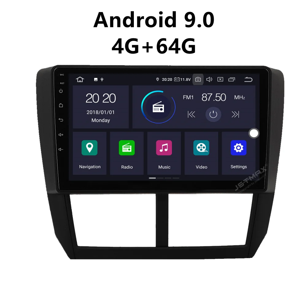 JSTMAX 9'' Android 9.0 4G + 64G ISP Screen Car DVD Radio Stereo Player For Subaru Forester Navi GPS 2008 2009 2010 2011 2012